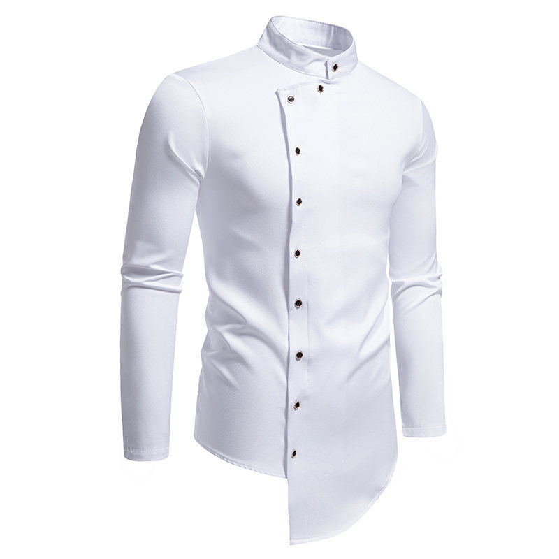 Fashionable Irregular Hem Stand Collar Men's Long-Sleeve Shirt
