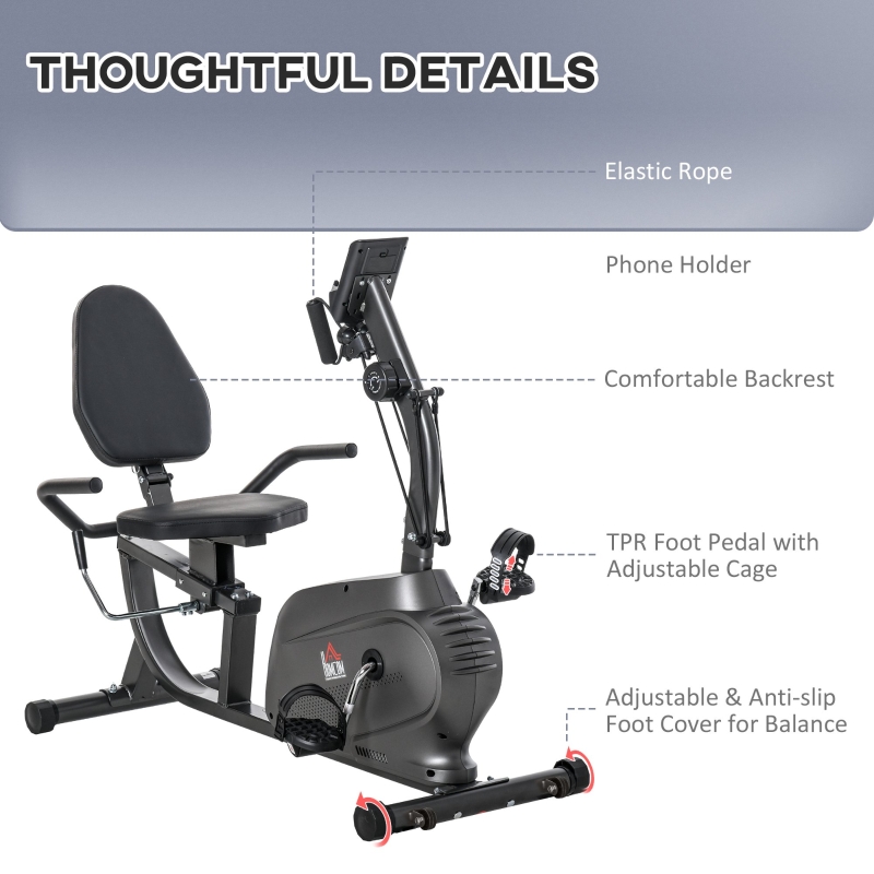 Product Name:HOMCOM Recumbent Exercise Bike Recovery Exerciser, 8-Level Magnetic Resistance Stationary Bike with Pad Holder, LCD Monitor, for Indoor Cardio Workout, Black