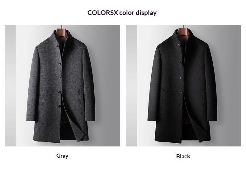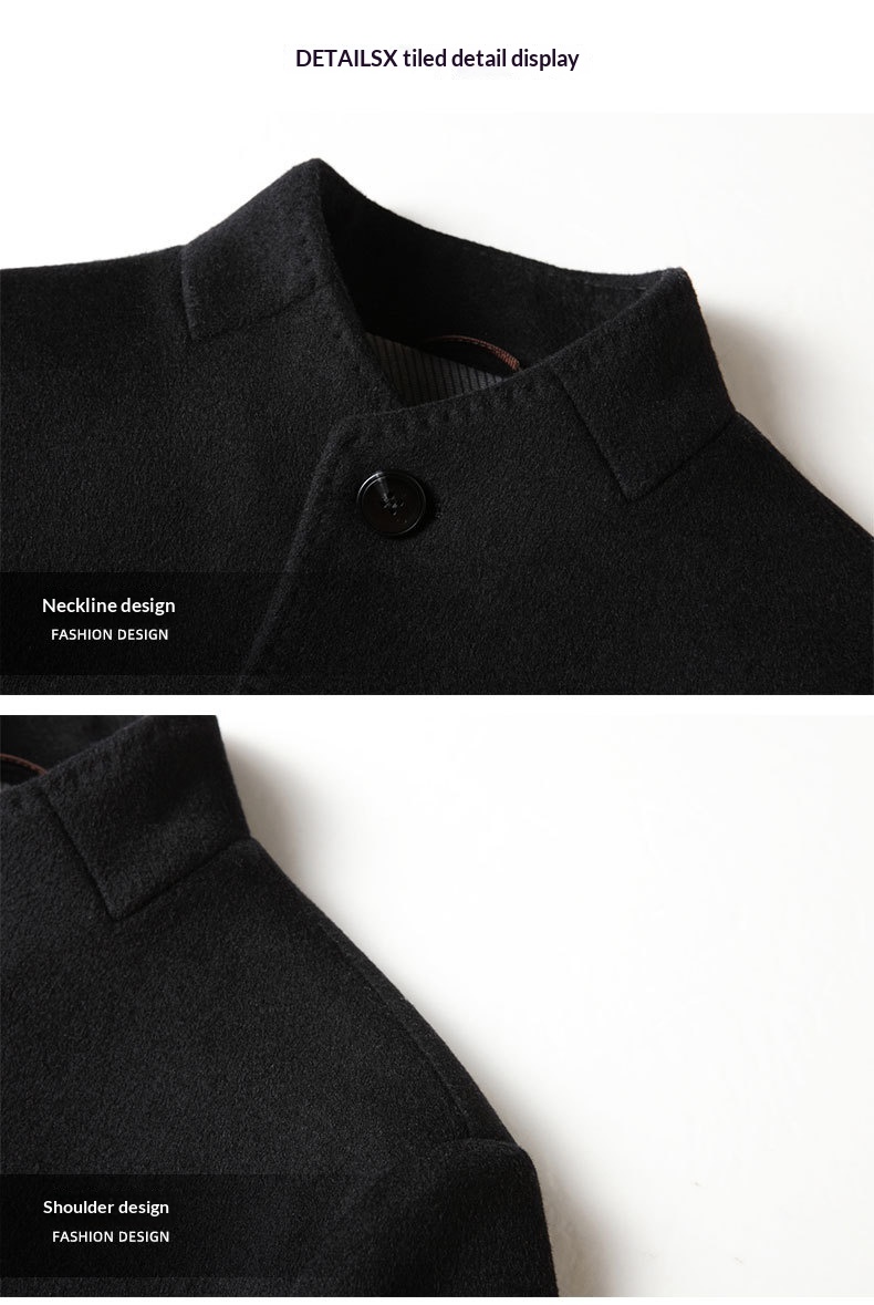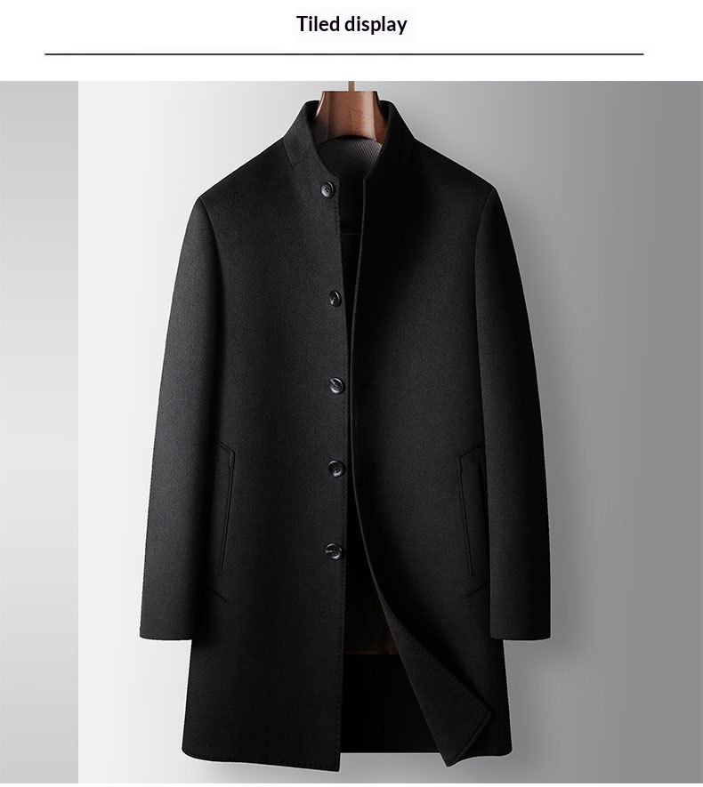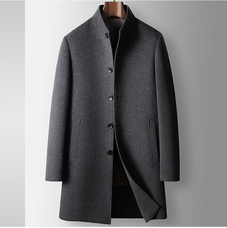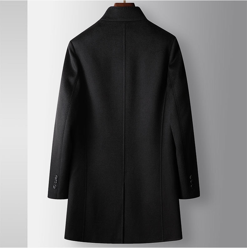 Men's Mid-Length Handmade Wool Coat With Stand Collar
