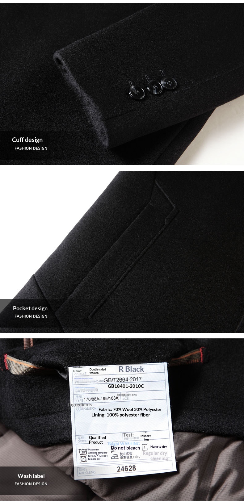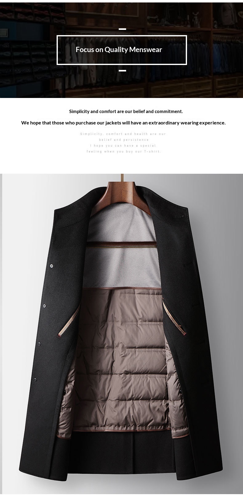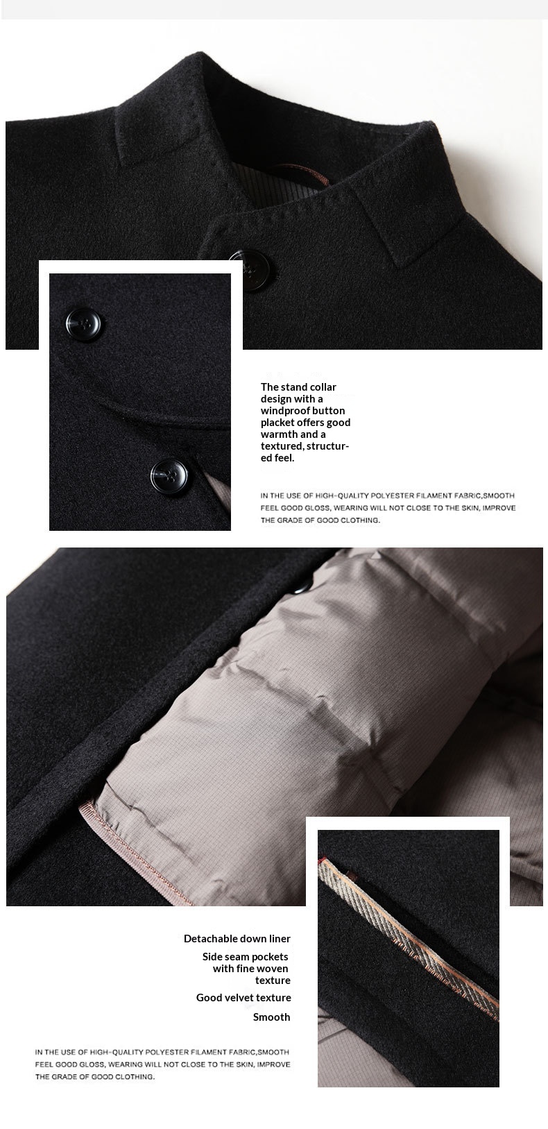 Men's Mid-Length Handmade Wool Coat With Stand Collar