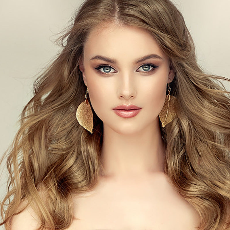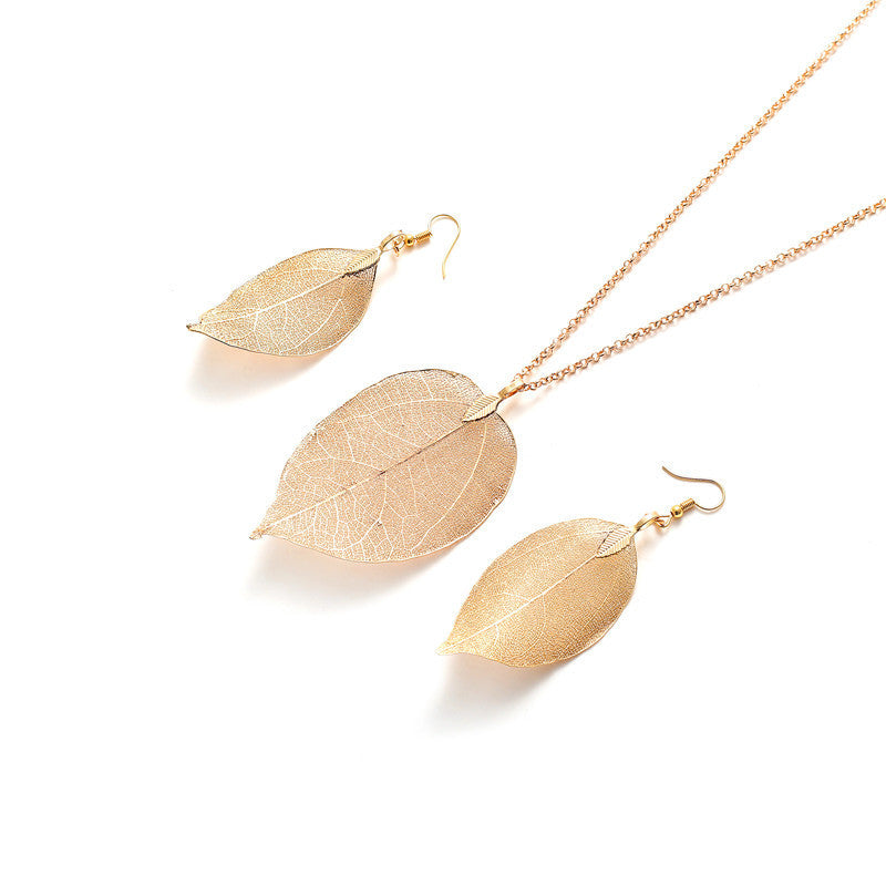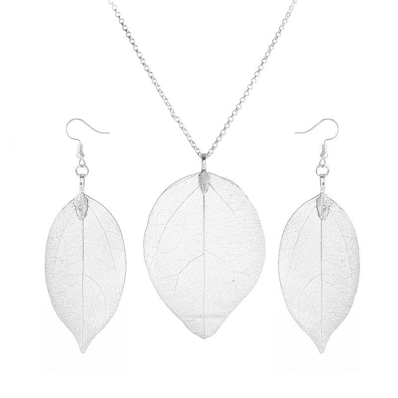 Natural Real Leaf Long Necklace And Earrings Set