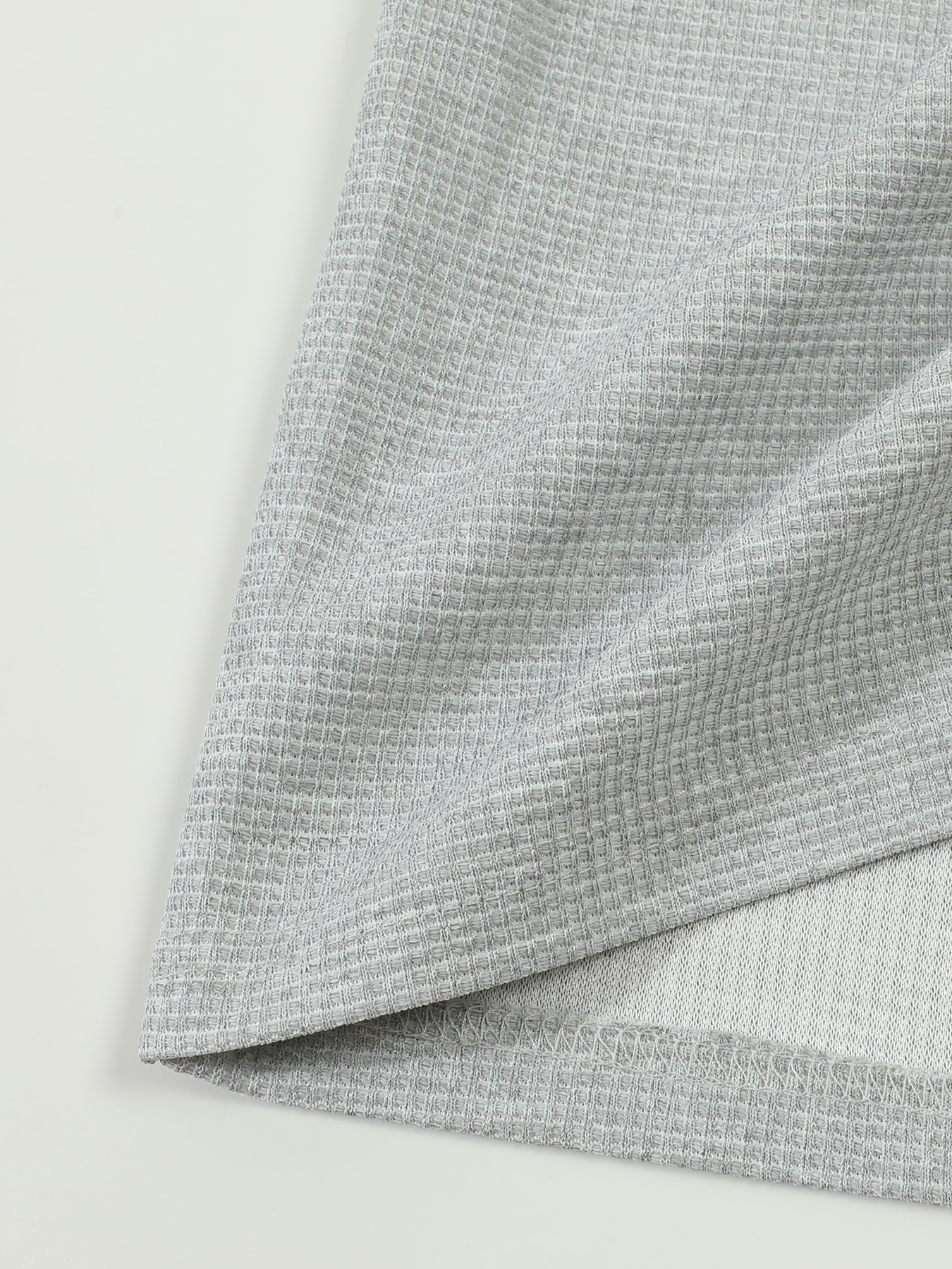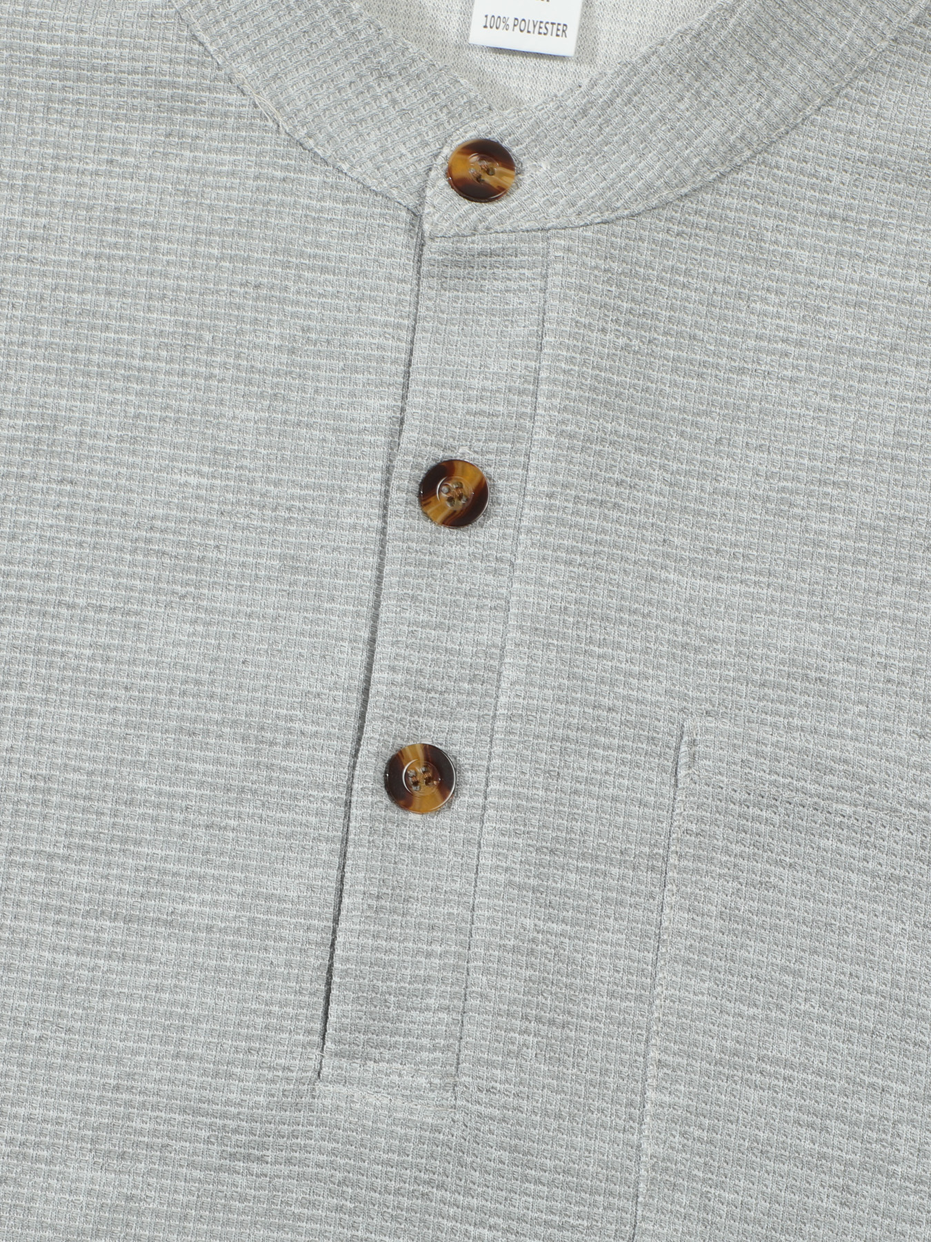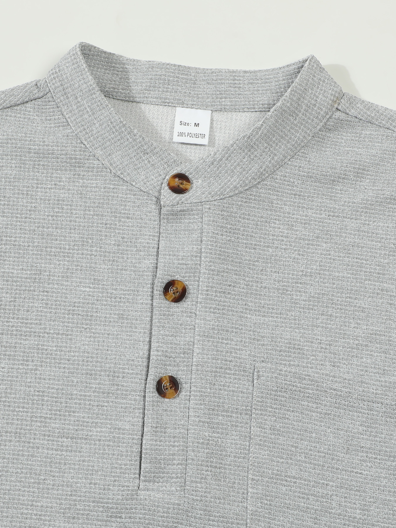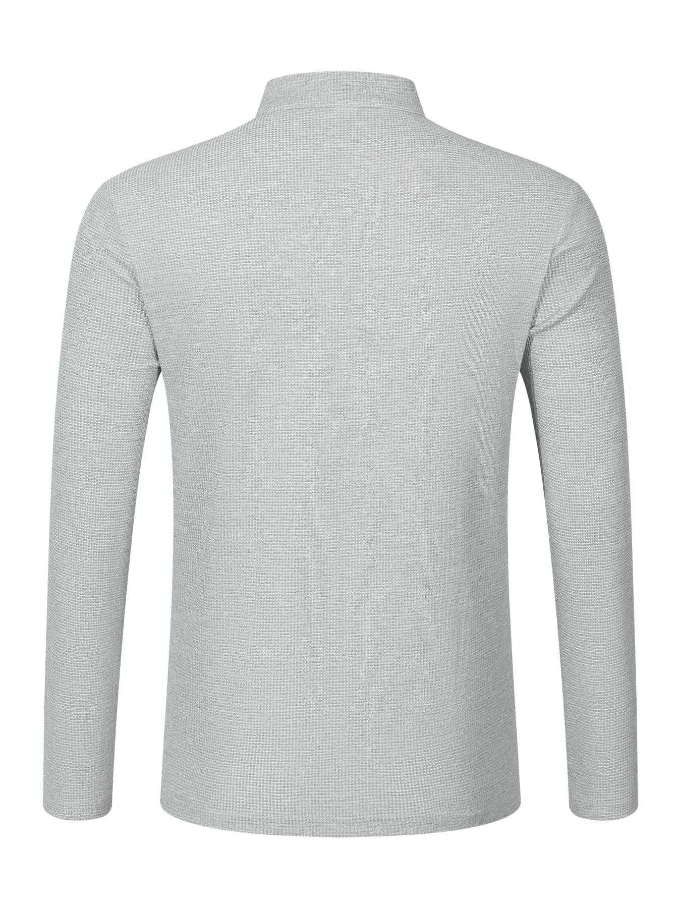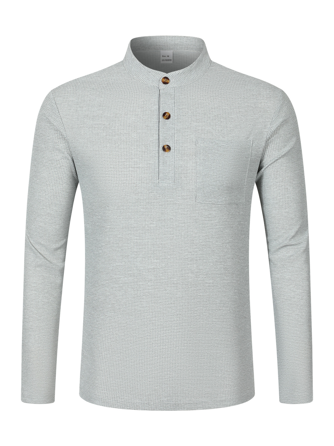Waffle-pattern Solid-color Stand-up Collar With Long Placket And Buttons Long Sleeves