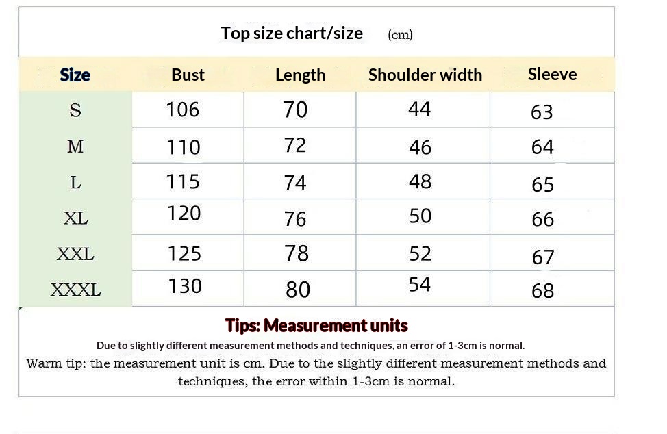 Sizes: S, M, L, XL, XXL, XXXL
