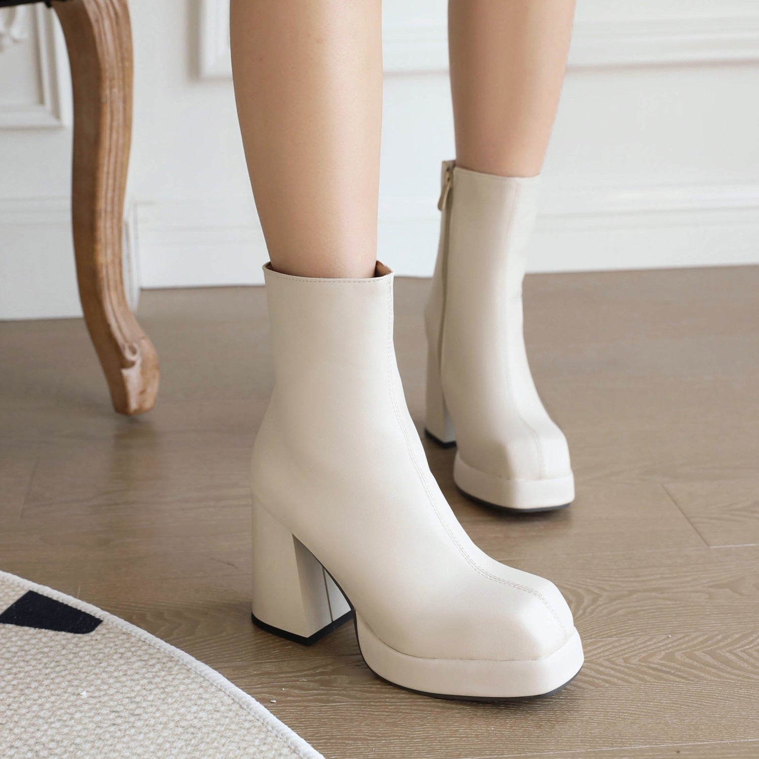 Women’s Retro Chunky Heel Platform Ankle Boots – Side-Zip Casual Boots
